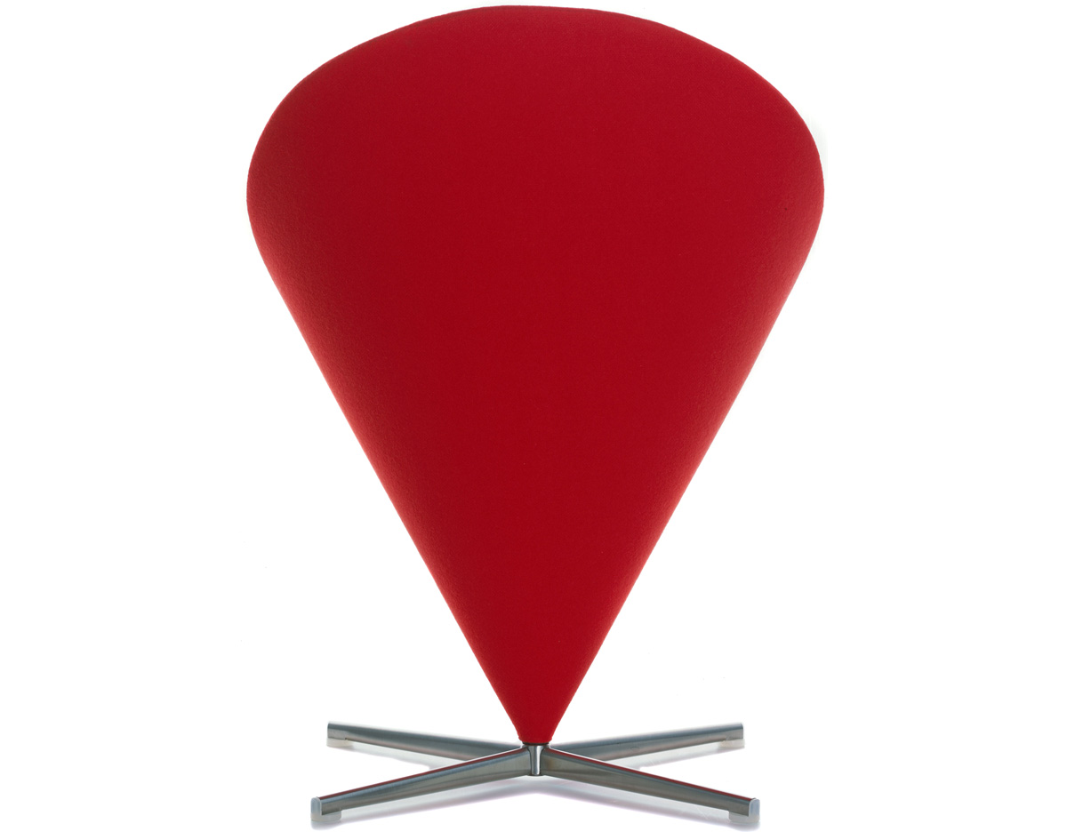Cone Chair 讓 Verner Panton 引燃國際對他的注目,以鋼管骨架塑形而出的幾何造型,外覆羊毛布料或是皮革,在當時崇尚自然材質的北歐風格裡獨樹一幟。原本 Verner Panton 只是想替家人所開設的餐廳設計出一張特別的椅子,當紅色的 Cone Chair 出現在餐廳後,立即被家具商看上而簽下生產,隨之而來,大量的雜誌媒體披露,也讓一張椅子產生了全球為之瘋狂的震撼力,一直晃盪到歐洲以外的地方。緊接著 Cone Chair 的成功,隔年亮相的 Heart Cone Chair 也再次成為全球設計話題焦點。