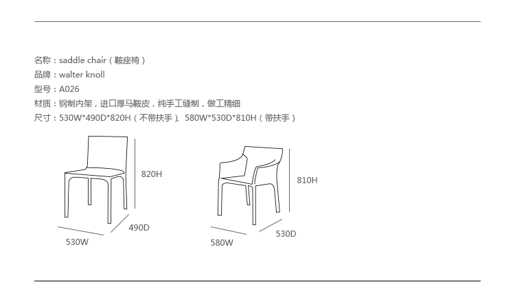 不带扶手:530 w | 490 d | 820 h