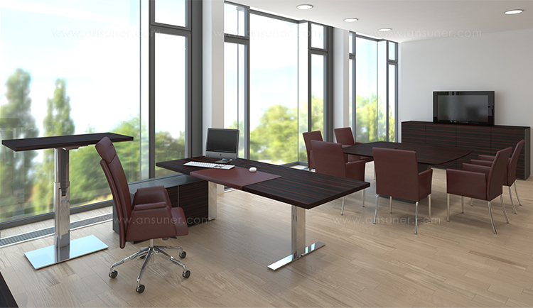Exec_V是一款可调节高度的办公室系列,灵活的升降功能是这款产品的代表性功能。你既可以坐着也可以站着,完全符合人体工程学和对健康的追求。桌面看起来像是漂浮在底座和底座上,直线和角、宽和立方体的形状形成一种和谐的相互作用。电缆被包裹在升降底座上,作用于包括班台、副柜、会议桌等等。Exec_V是一款具有代表性和使用性的优秀升降班台