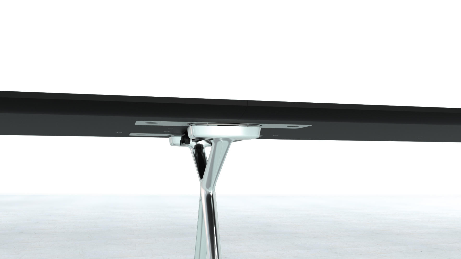 这款Conference-X最大的亮点就是:桌子腿是可以将两个桌面一起快速而轻松地结合在一起,而不需要借助任何工具。而这个专利技术的的连接关键是:桌子腿顶部处在固定锁,桌底有锁扣,以此保证绝对安全和稳定。这也很好的解决了会议台的多样性:从个人的工作桌到成排的会议桌,桌子形状、大小、都可以通过脚架来进行拼接.