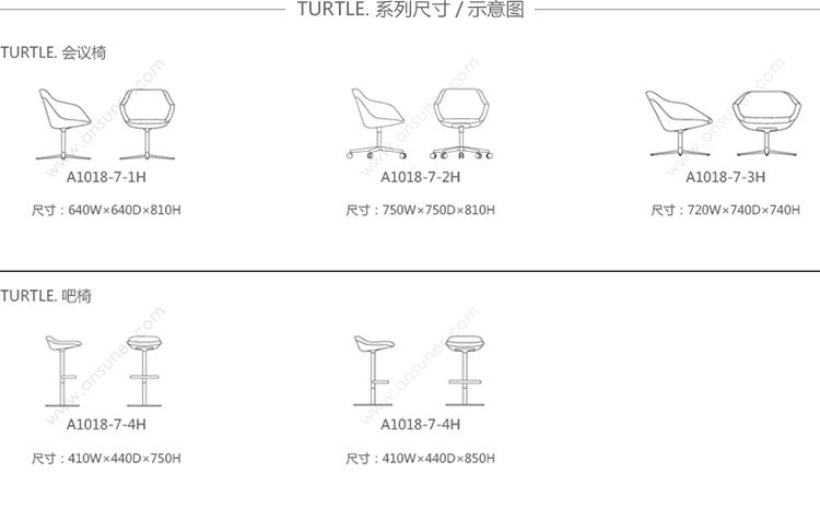 Turtle系列的吧椅特征集中在它小巧的身体上。内部支持的桶可以提供安全的支撑同时脚踏板是最完美的延伸线。旋转底座是一个扁平的底座。外壳可以用白色或黑色塑料,也可以用织物或皮革覆盖。
