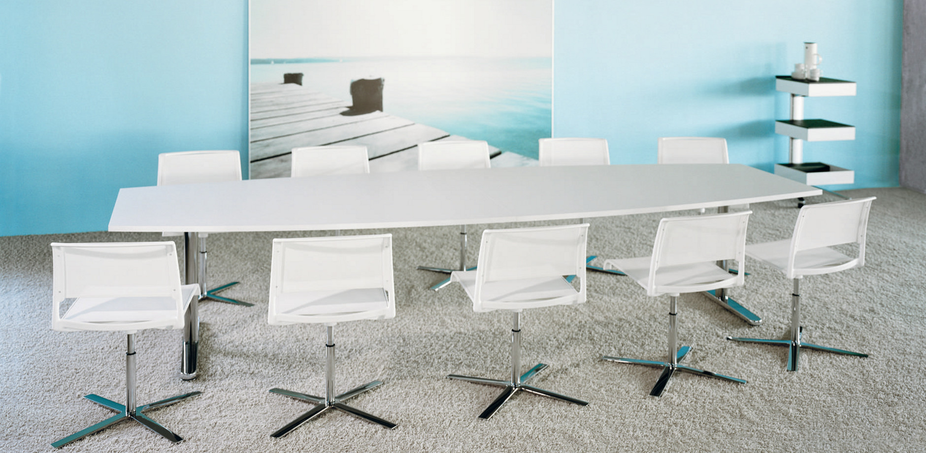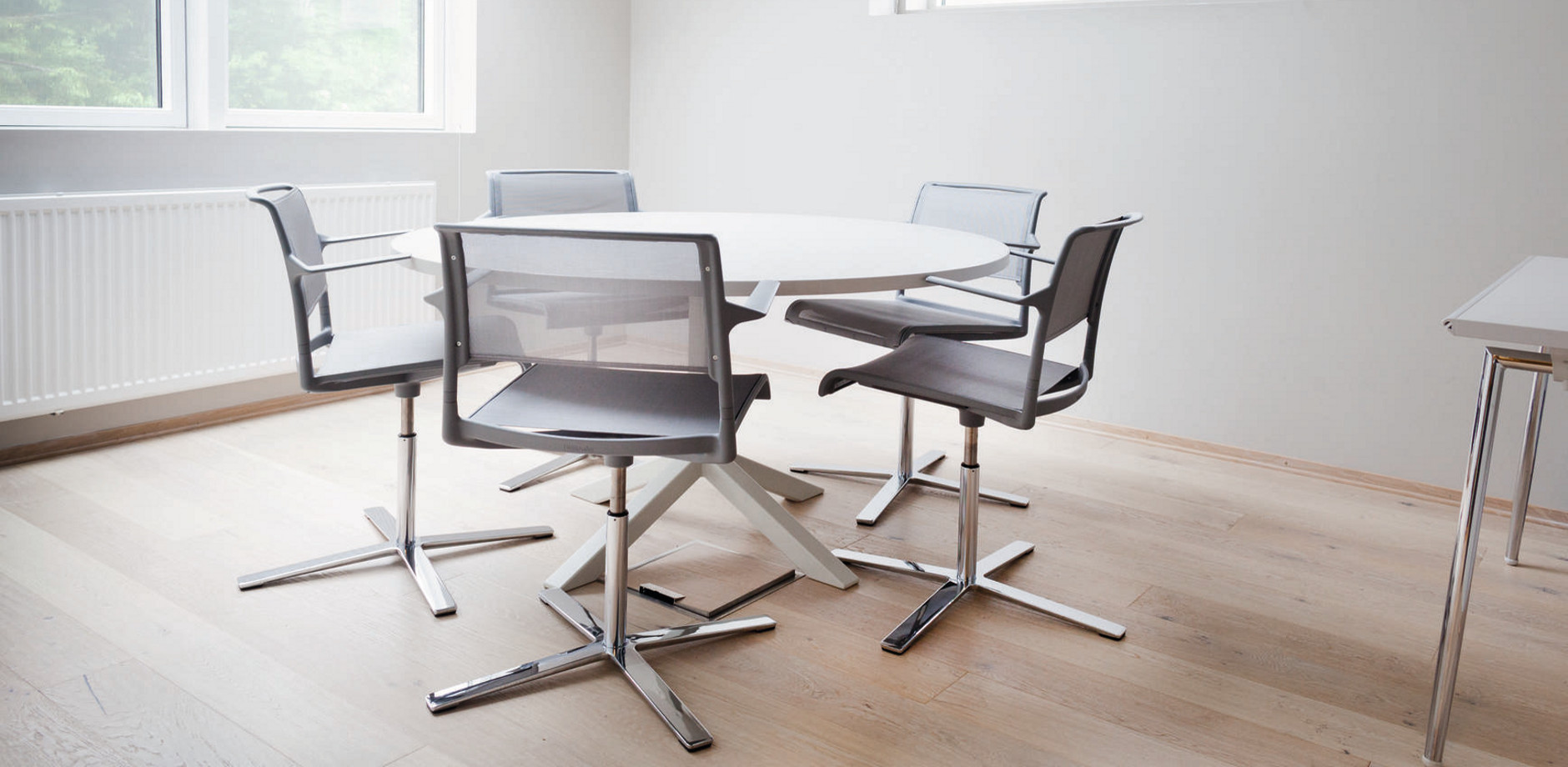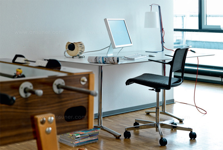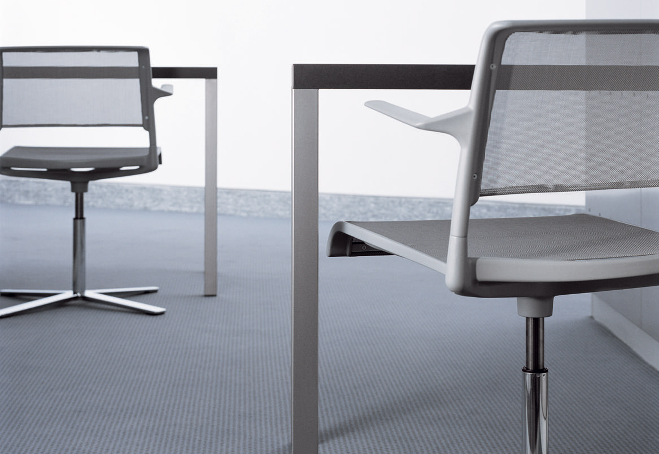 最少的材料。最大的透明度。简单易用。这个系列是一款巧妙组合的轻质家具,同时也很舒适。还有什么比把访客和标准办公室的旋转椅加起来更符合逻辑的呢?访问旋转椅有一个平面的、四臂的星形基座和可运输的、高度可调的办公椅,具有一个垂直对齐的、安全的、一元化的铝基座。类似于旋转基座,它们是镀铬的,因此特别坚固。这两个模型都有一个接触抑制特性,并且非常灵活。因此,他们对于各种各样的应用,如会议、讨论、展示厅、阅览室、网吧或家里的办公桌,都非常舒适。