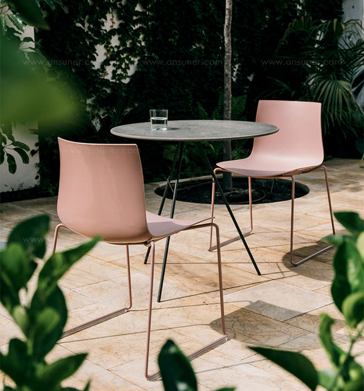 Catifa 46外壳和底座采用多种材料,颜色和饰面制成,适用于室内和室外的住宅和合同用途。外壳采用双弯曲胶合板,单色或双色聚丙烯制成,表面覆盖皮革或织物,或者采用软垫衬垫制成。底座采用镀铬钢,缎面不锈钢,铝或粉末涂层铝制,并提供以下基础配置:雪橇,四脚管,铝支架和五星。雪橇和四脚底座可堆叠,以便大规模使用和存放。桌面配件可供校园或礼堂使用。 Catifa 46也可作为凳子使用。