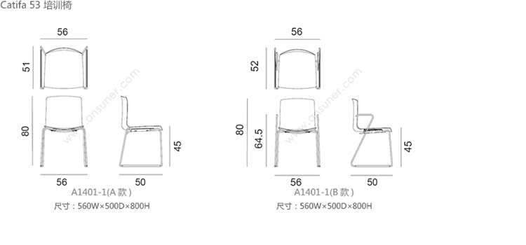 Catifa 46 培训椅 系列尺寸/示意图