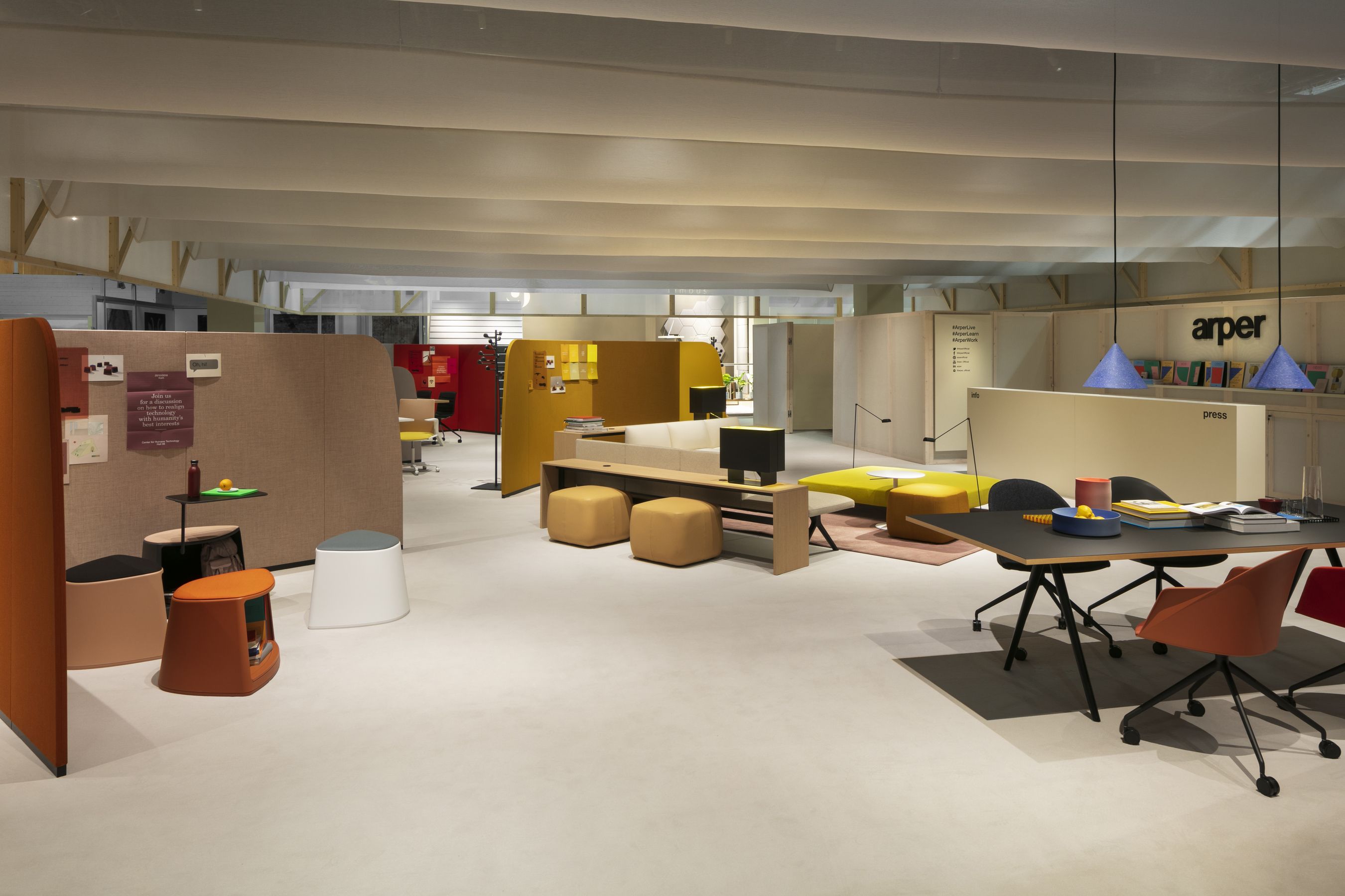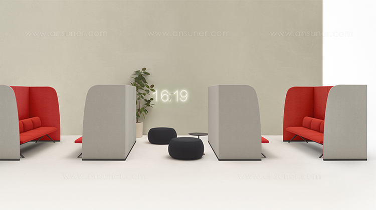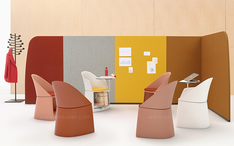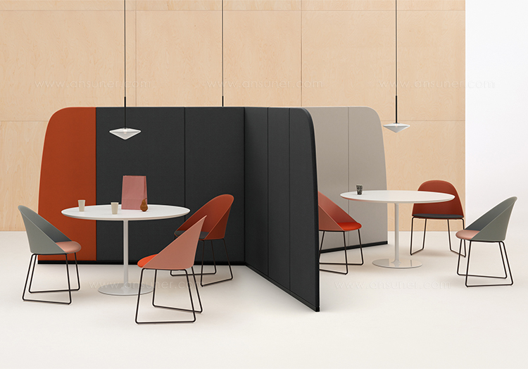 用于定义空间的周长。 Paravan在形式和建筑执行方面具有雕塑感,既清晰又创造空间。像括号一样可以围绕对话,Paravan在开放区域创造亲密感,并采用吸音面板来支持焦点,注意力和协作。
