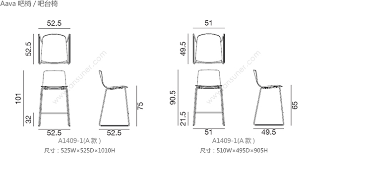 Aava 吧椅/吧台椅 系列尺寸/示意图