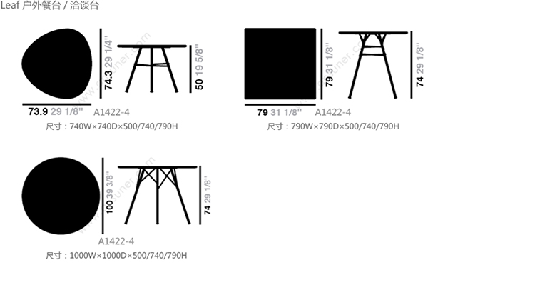 Leaf 户外餐台 系列尺寸/示意图