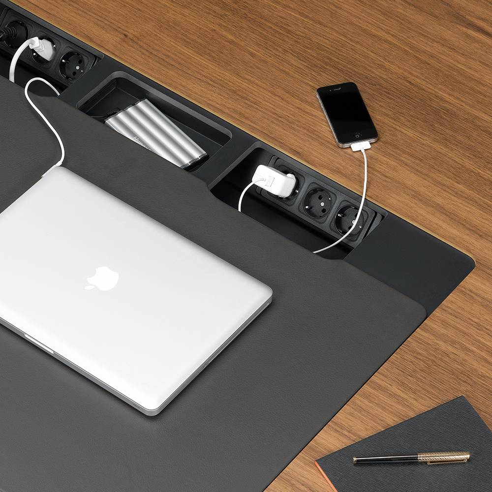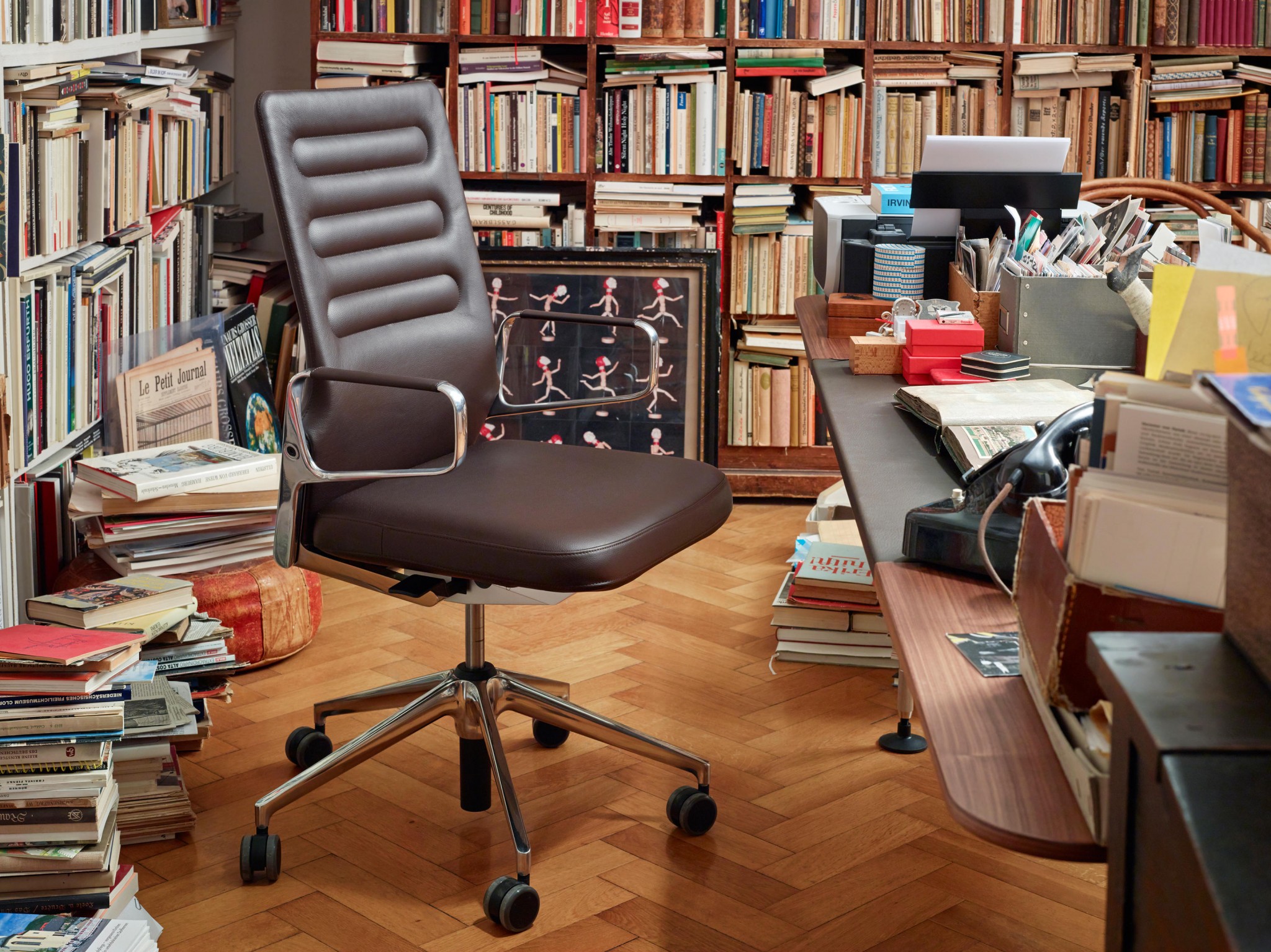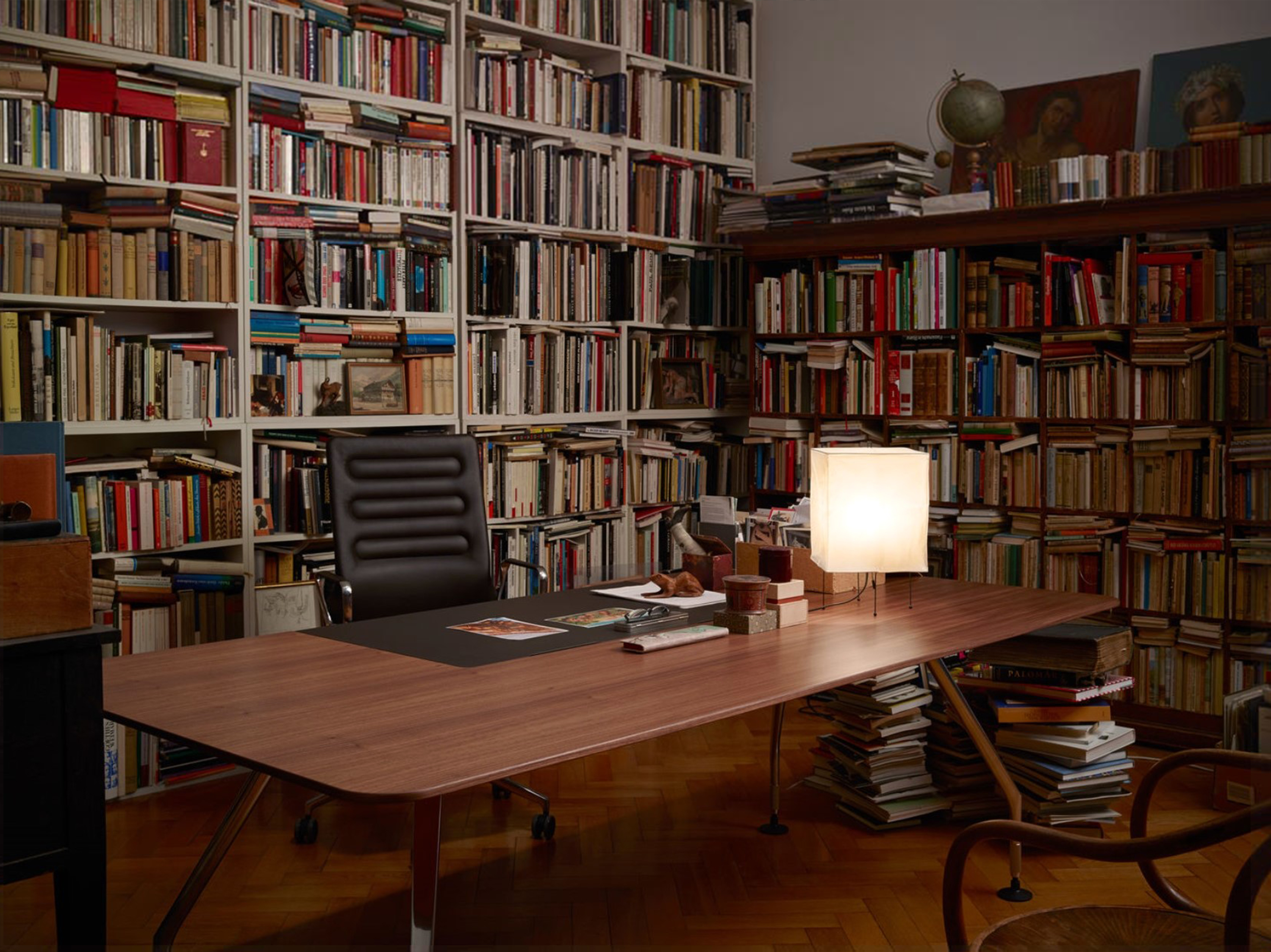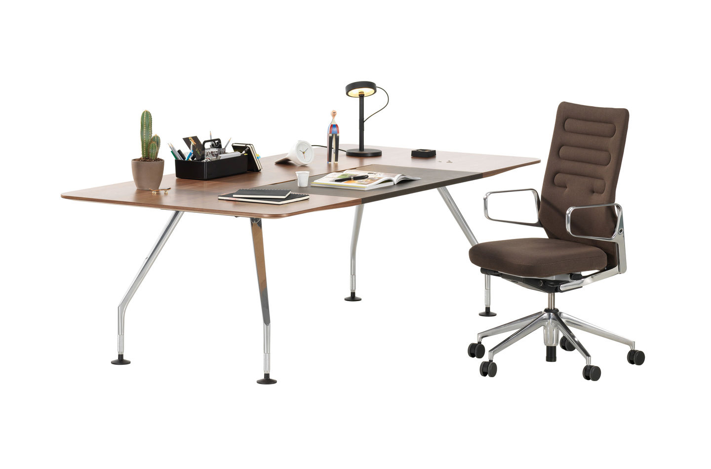 行政办公室计划包括一张大桌子和三个不同的储物家具。 所使用的材料,如铝,木材和皮革,质量特别高,精心制作到最后的细节。 凭借其建设性的轻盈和设计优雅,该计划可以与Ad Hoc办公系统,AC 4椅子(均由Antonio Citterio设计)或Vitra系列经典系列完美结合。