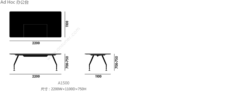Ad Hoc 办公台 系列尺寸/示意图
