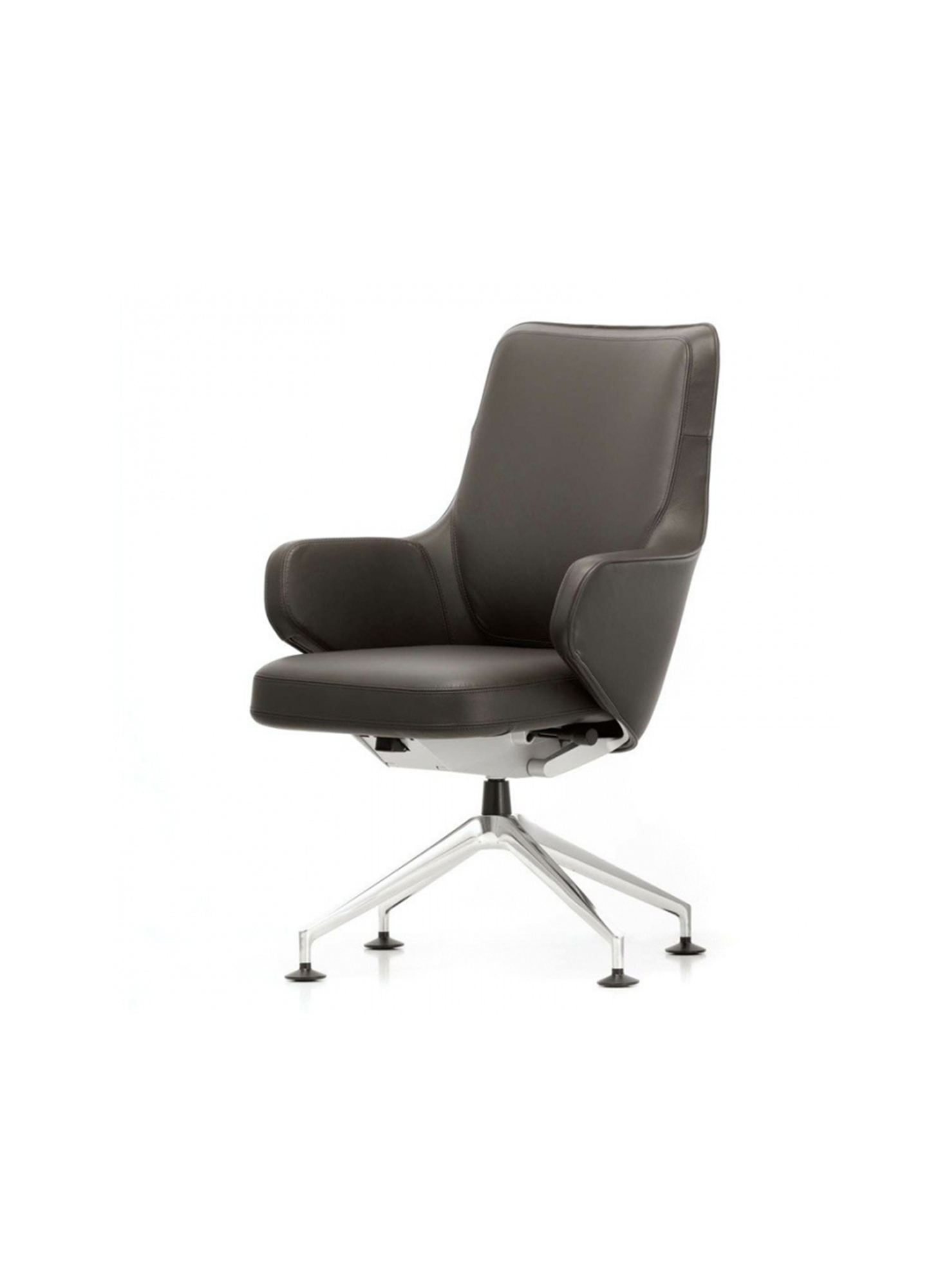 Grand Executive椅子结合了Grand Repos休闲椅的优雅,这是由Antonio Citterio为Vitra Home Collection设计的,具有现代办公椅的功能。 Grand Executive椅子的尊贵光环与时尚美感相得益彰。采用优质皮革制成,柔软的软垫内饰提供极致的舒适感。装饰性接缝凸显了椅子的手工细节,并勾勒出其体积结构。 FlowMotion机制可以适应个人用户,以确保每个坐姿的同步舒适度。 Grand Executive Highback模型配有可调节颈垫。
