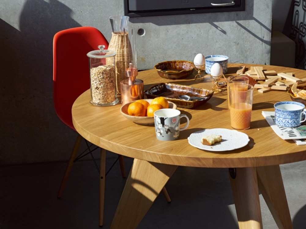 法国设计师兼工程师JeanProuvé于1949年为巴黎大学创建了圆形木制Guéridon桌子。它有两种不同尺寸和各种类型的优质木材。