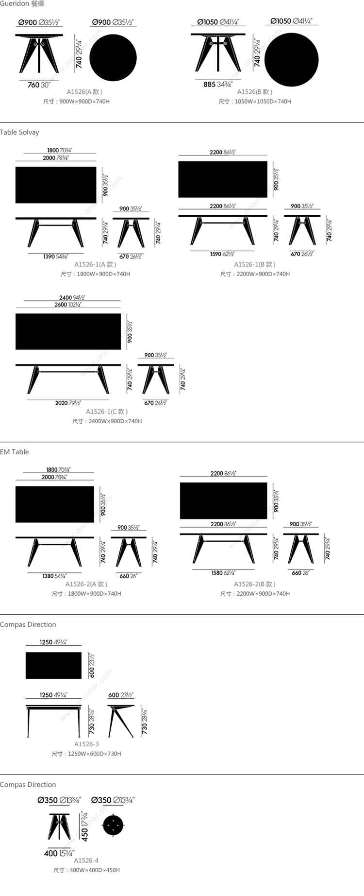 Gueridon 洽谈桌 系列尺寸/示意图