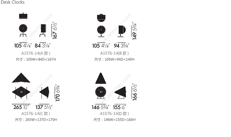 Desk Clocks 系列尺寸/示意图