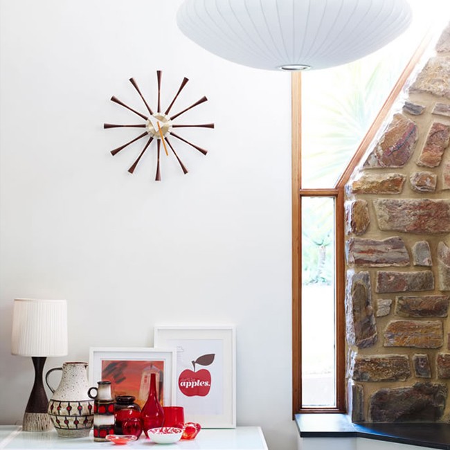 信仰进步和日益增长的经济繁荣是1950年左右美国生活方式的核心方面。一切似乎都有可能,人们努力做到“现代”。 为了将现代设计融入美国家庭,乔治·尼尔森构思了各种日常用品:灯具,钟表和其他家居饰品。 直到20世纪70年代,尼尔森办公室为家庭创造了许多不同的物品,包括泡泡灯和球钟,它们成为了本世纪中期现代设计的象征。