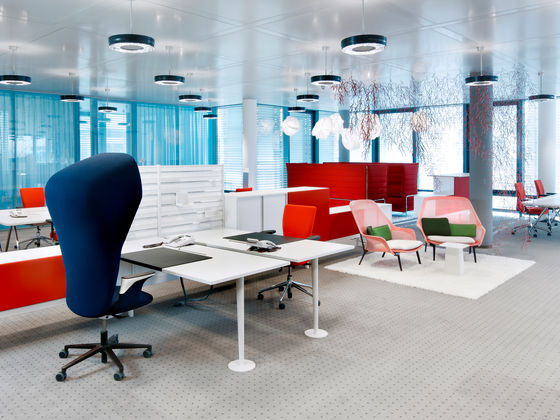 34级是办公家具系统,既可用于实现团队工作的解决方案,也可用于个人工作的工作站。 该系统基于34厘米高的工作台,使其看起来轻盈且漂浮。 工作台是电缆管理的平台,将橱柜,架子,桌子,座椅或花箱等模块放置在易于达到的水平。
