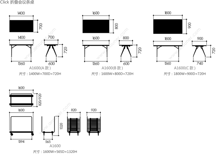 Click 折叠会议条桌 系列尺寸/示意图