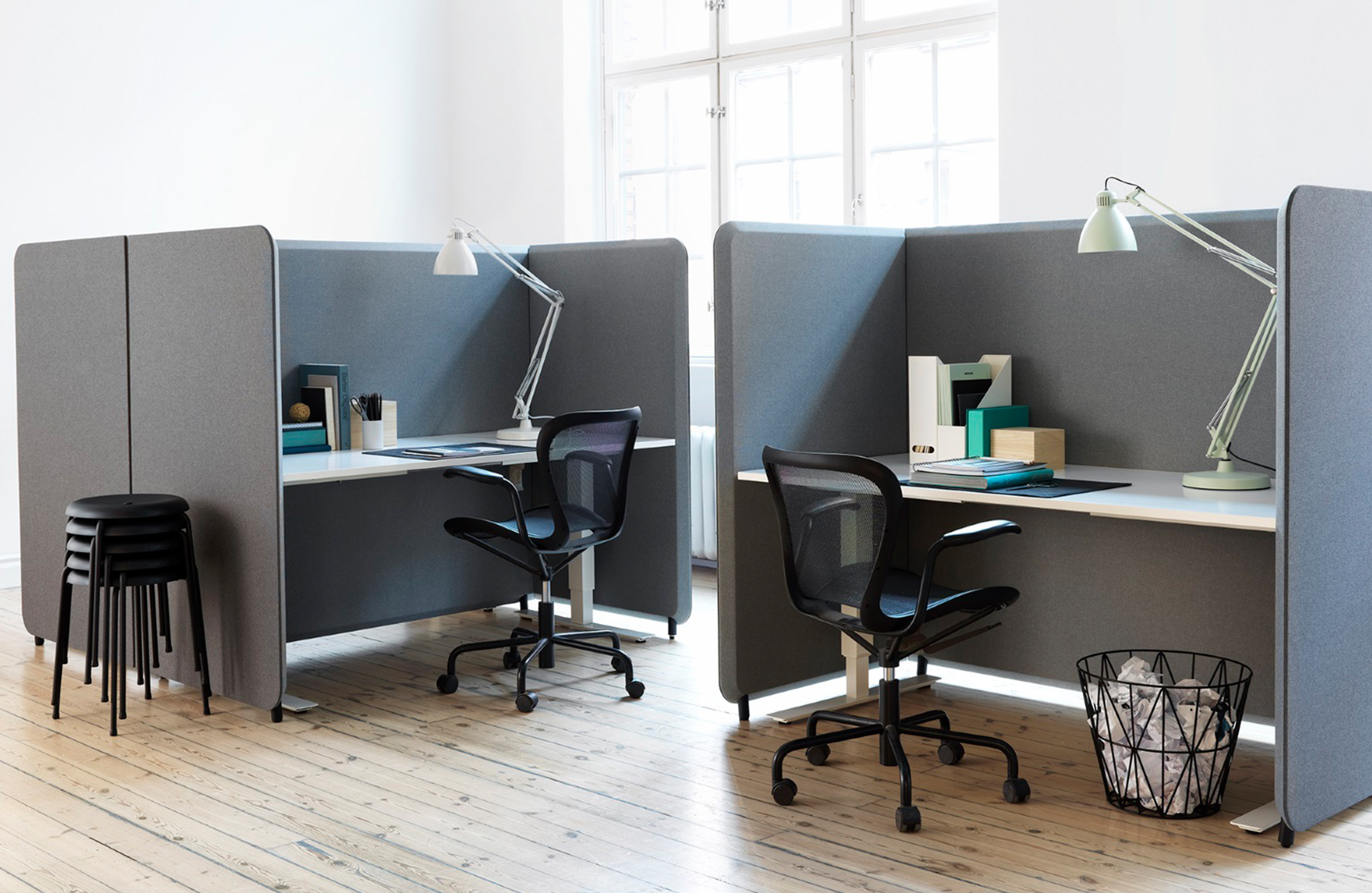 声学环境是开放式办公室的一个重要因素,但同样重要的是工作场所的设计要考虑周到并且运作良好。Domo是一系列适合办公室使用的吸音屏幕,其倾斜边缘是其最显着的特征。该系列包括从简单的悬挂屏幕到小隔间和独立的房间隔断等各种设施。