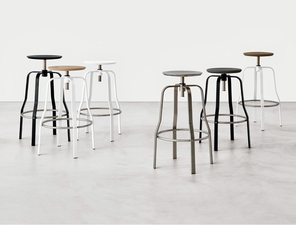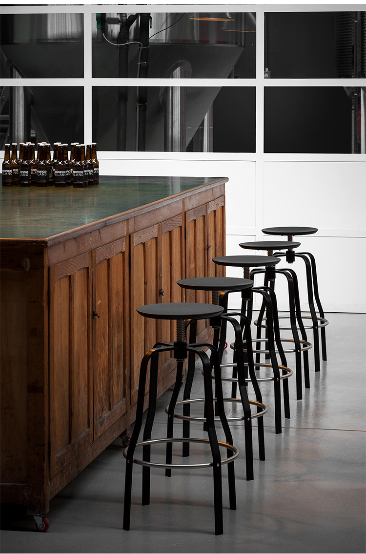 Giro回忆起美国的电影院和咖啡馆,但它有意大利轻盈的外观。由一个金属带制成,它的形状是一个轻轻凹的圆圈,可以容纳座椅。它的螺丝很灵活,可以调节它的高度和舒适度