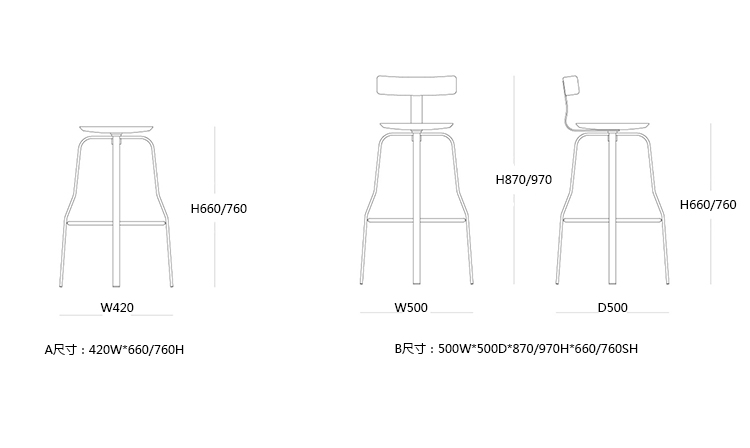 B:500W*500D*870/970H*660/760SH