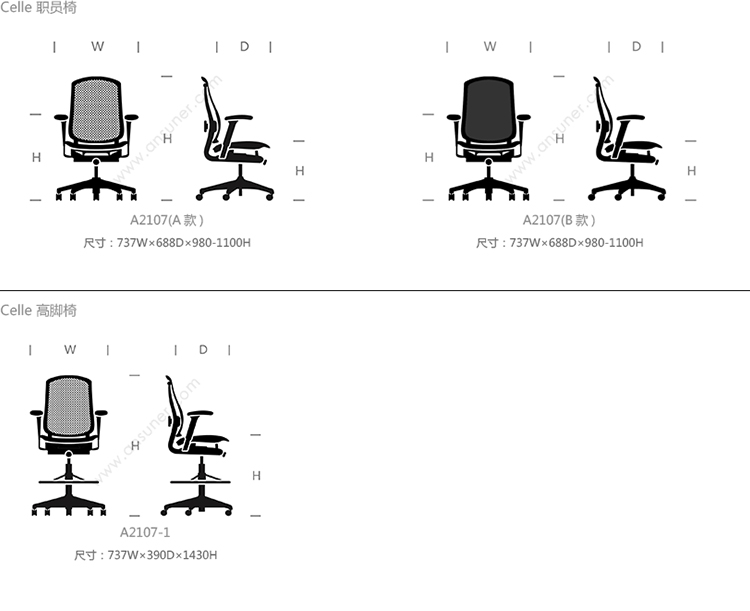 Celle 职员椅 系列尺寸/示意图