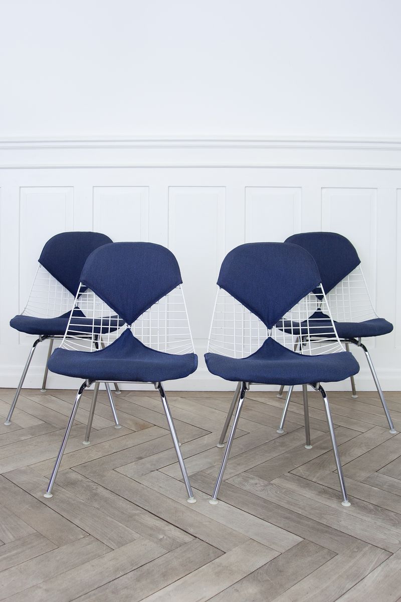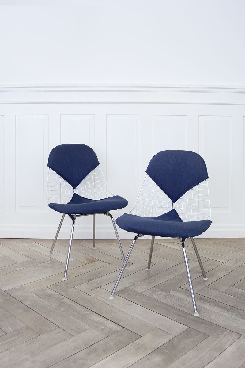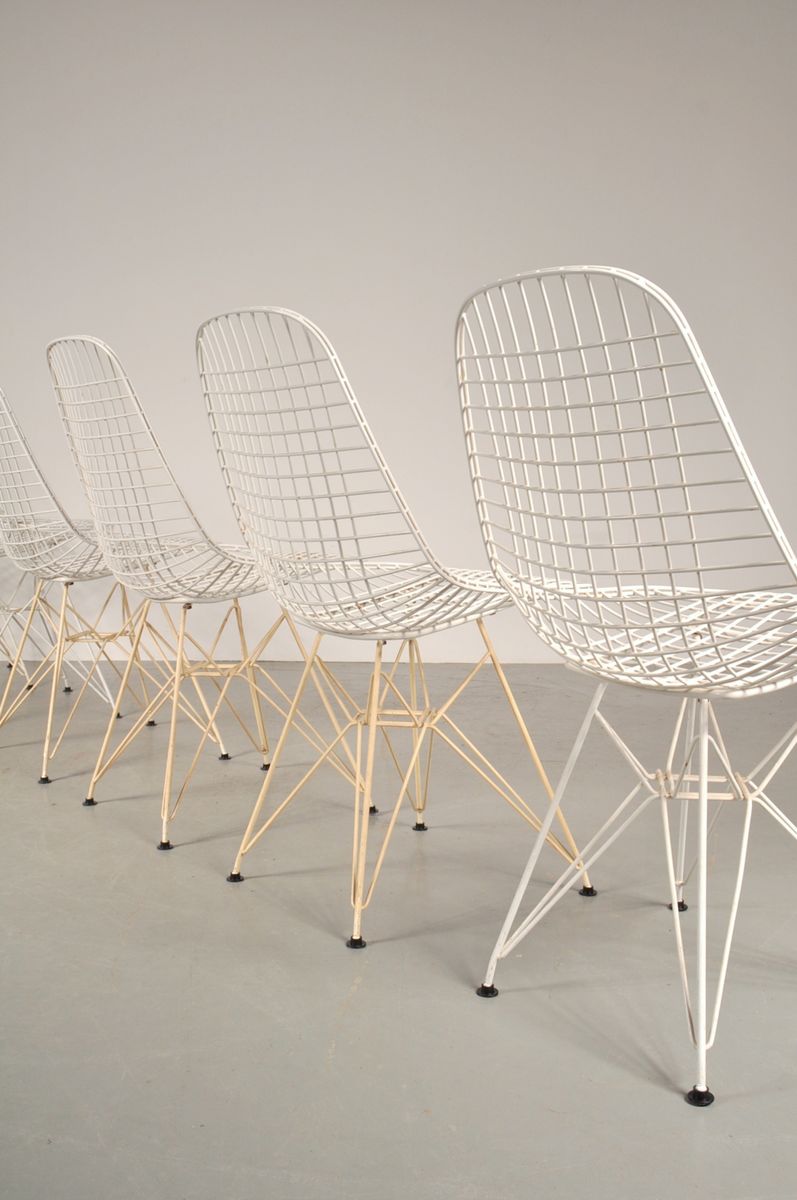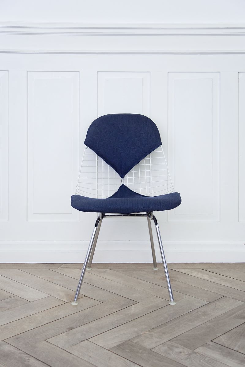 Charles & Ray Eames 1951 年發表的 Wire Chair 系列,以一片式有機網狀椅座,延伸變化出一系列不同椅腳及座墊搭配的單椅,這系列椅款輕巧透明的設計,在 60 年代可說是運用了當時最先進的技術來製作,靈感則是來自於鏤空的金屬收納籃,金屬條交織的椅座,彎曲的弧面不僅符合人體工學,在視覺上更具有穿透性。
