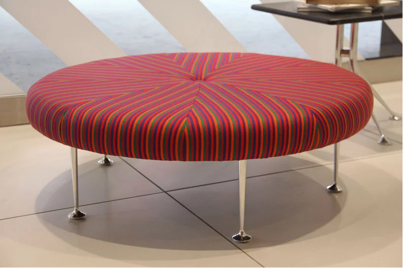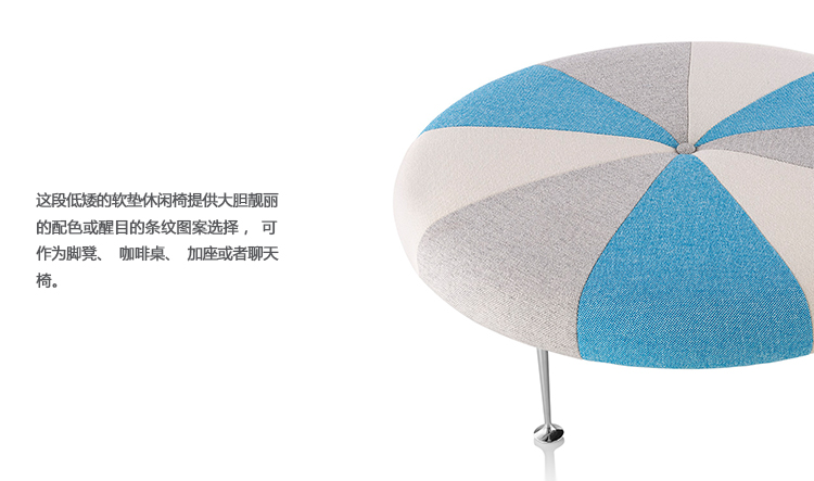 Girard彩色圆轮脚凳俏皮可爱、色彩艳丽,图案丰富,毫无疑问是Alexander Girard的作品。这段低矮的软垫休闲椅提供大胆靓丽的配色或醒目的条纹图案选择,可作为脚凳、咖啡桌、加座或者聊天椅。