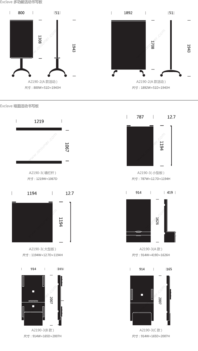 Exclave 系列尺寸/示意图