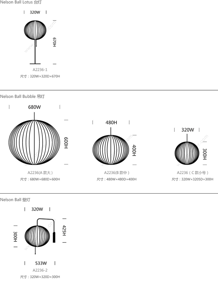 Nelson Ball Lotus 系列尺寸/示意图
