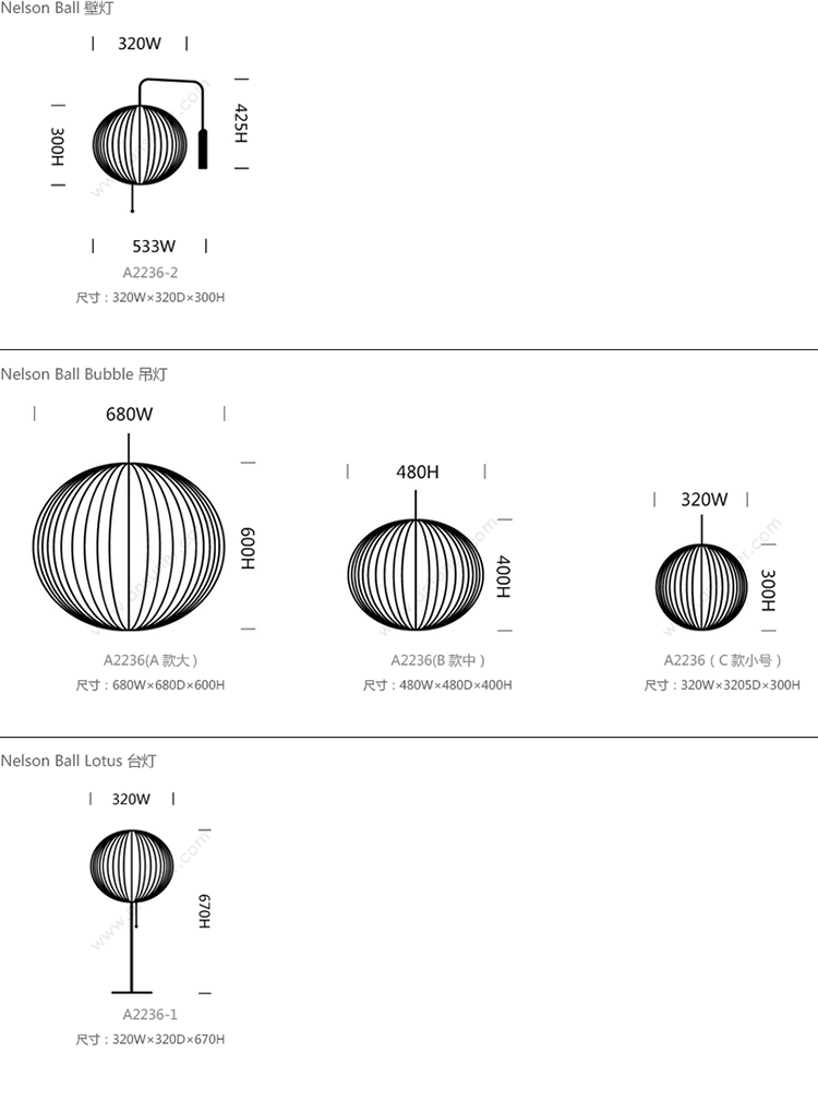 Nelson Ball 系列尺寸/示意图