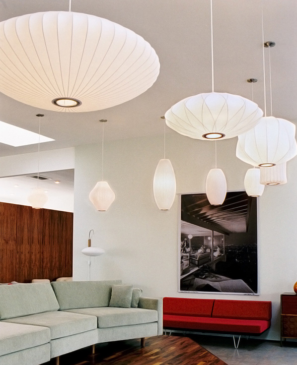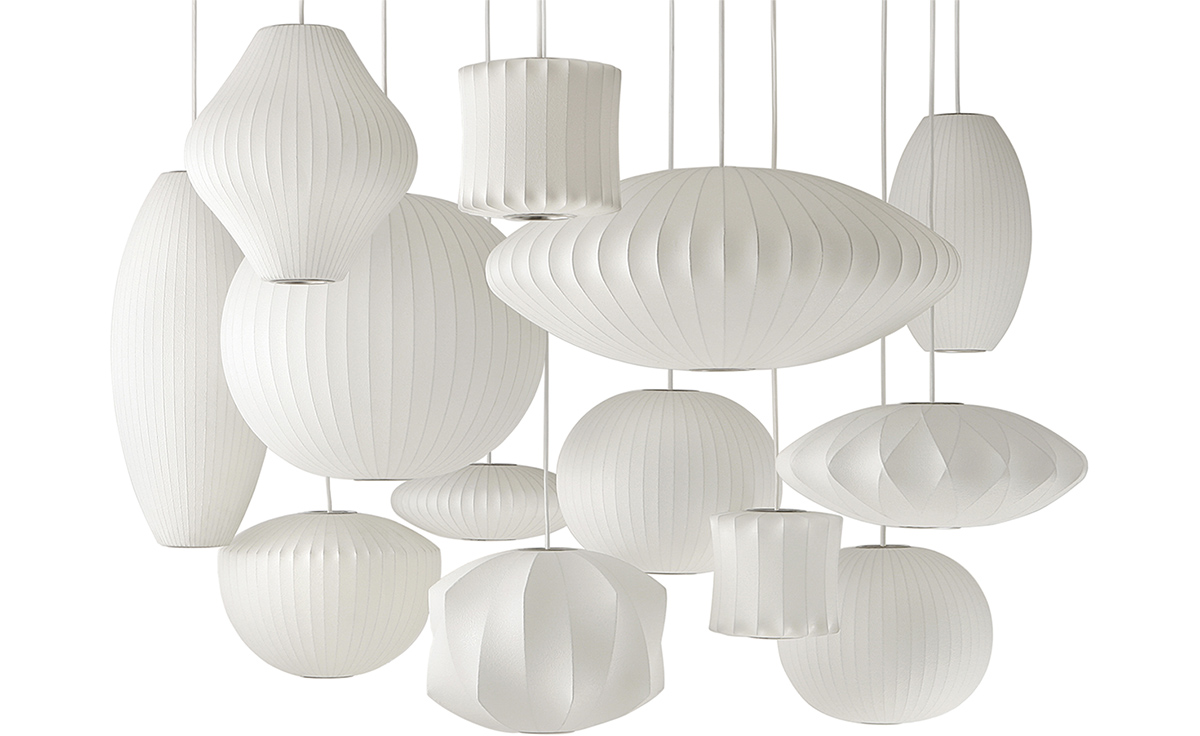 Nelson Propeller Bubble Pendant螺旋桨形气泡吊灯的下层结构中有许多棱角状的凹陷,外形十分醒目。这款雕塑般的吊灯配套有一个吊线板和将吊灯悬挂到天花板上的6英尺吊绳。Nelson最先于1952年设计了这些气泡灯,当时他偶尔碰到一组很喜欢的瑞典吊灯,想给自己的办公室买一套。“有一天,纽约的一家瑞典进口商品店Bonniers宣布对这些灯具进行促销。我带着办公室的一个伙计冲了过去,看到一款在商店里摆放了很久、上面满是手指印的样品居然标价125美金。”Nelson写到。这个价格在当时来讲太过昂贵,让Nelson萌生出自行设计的念头来。