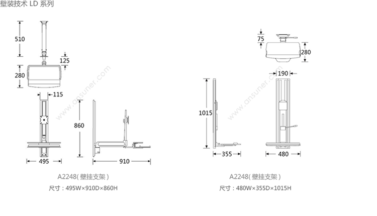 办公辅件|显示器支架|办公家具|设计师家具|LD 系列壁挂显示器支架