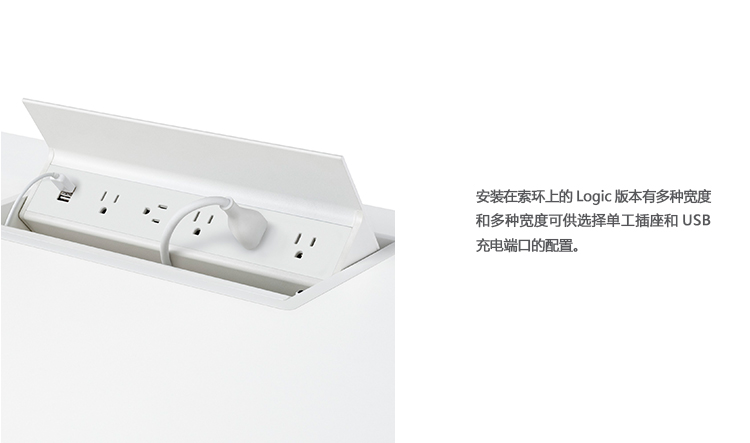 安装在索环上的Logic版本有多种宽度和多种宽度可供选择单工插座和USB充电端口的配置。