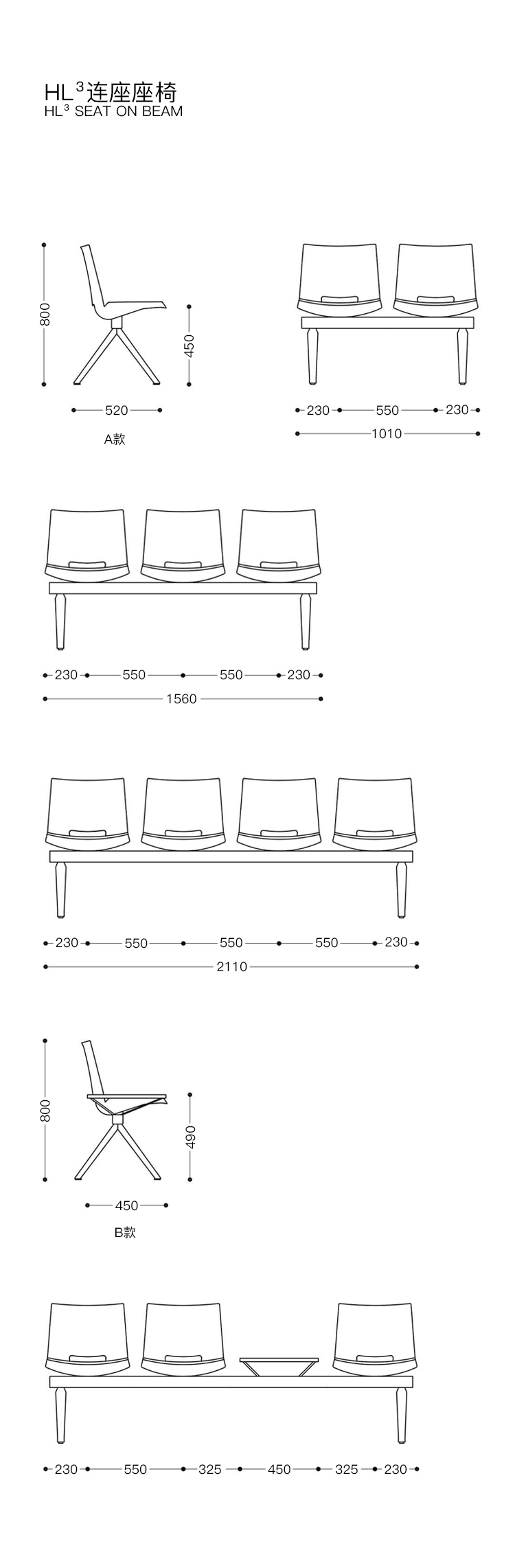 它有多种类型:在四足底座上(带固定或者翻折座椅),可旋转底座或连座座椅;它提供多种材料,饰面和颜色,可根据特定需要定制每个安装。