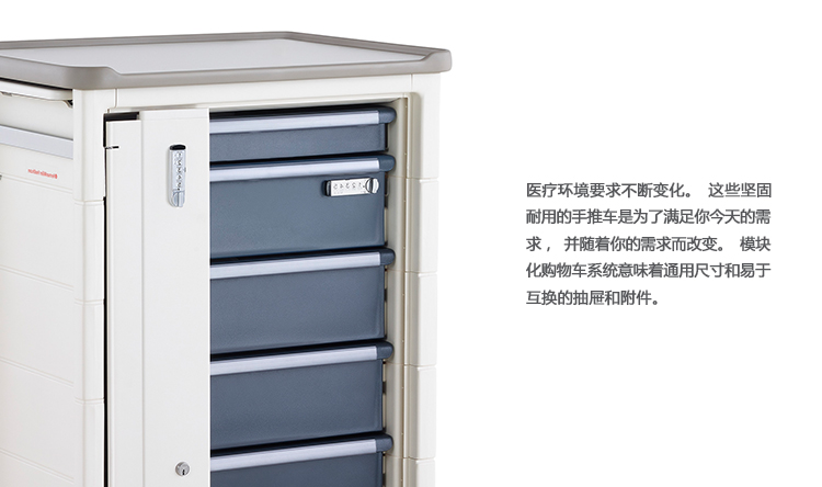 医疗环境要求不断变化。这些坚固耐用的手推车是为了满足你今天的需求,并随着你的需求而改变。模块化购物车系统意味着通用尺寸和易于互换的抽屉和附件。