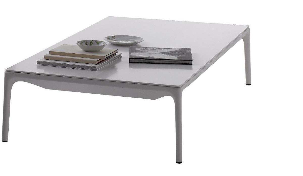 低咖啡桌,在矩形和正方形的形状 框架 在挤压铝和腿在压铸铝,涂漆无光泽白色。 上衣 在白色树脂,厚度9毫米 DIMS H 30厘米:44x150厘米,75x150厘米,75x75厘米和140x140厘米。H 19厘米:75x75厘米和140x140厘米