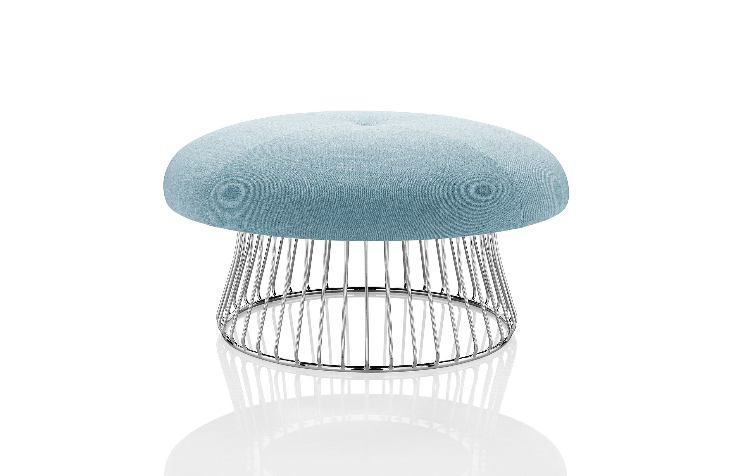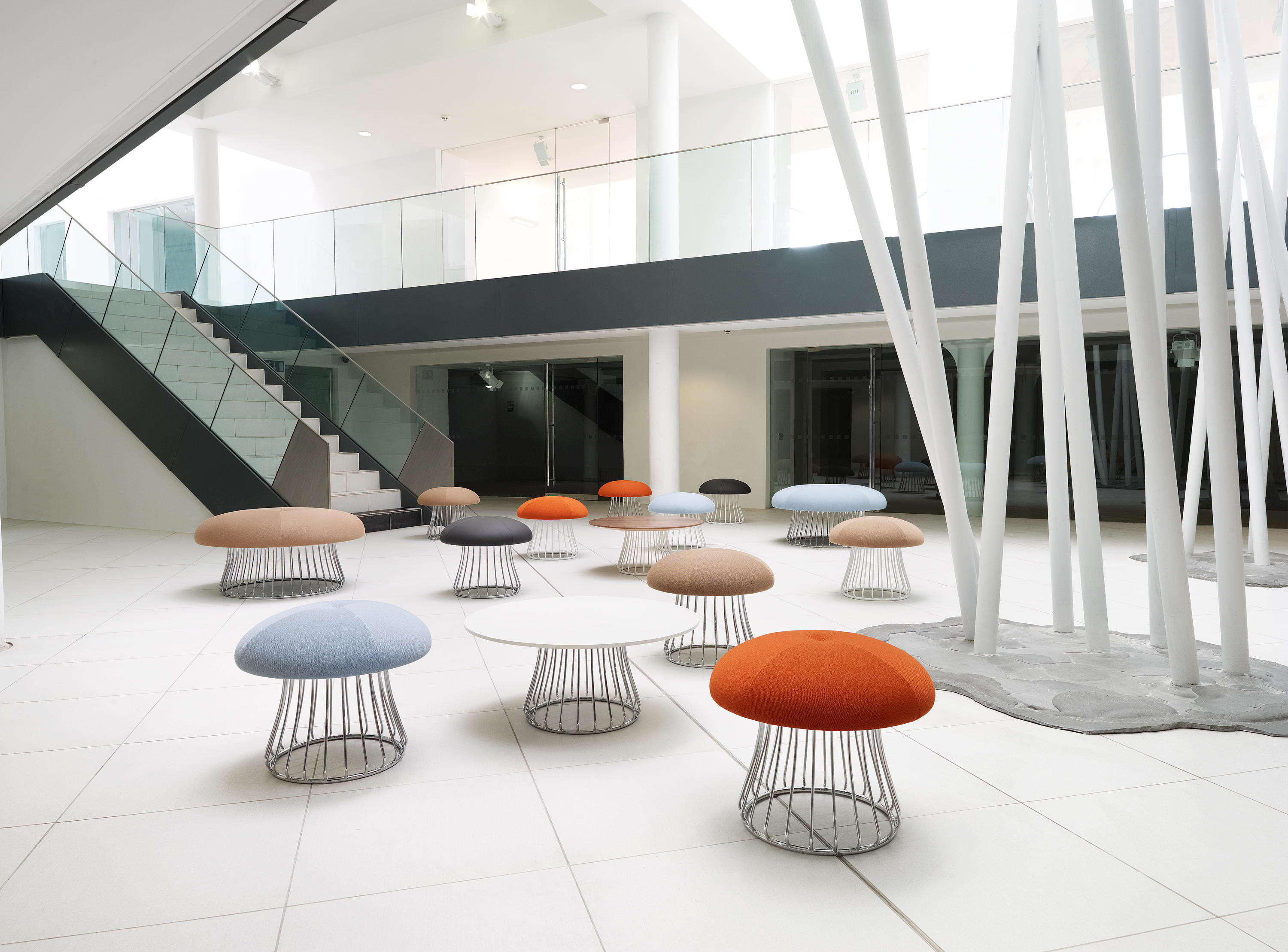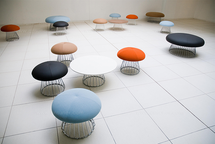 魔术系列有凳子和咖啡桌,都是由一个白色或黑色镀铬脚架组成。