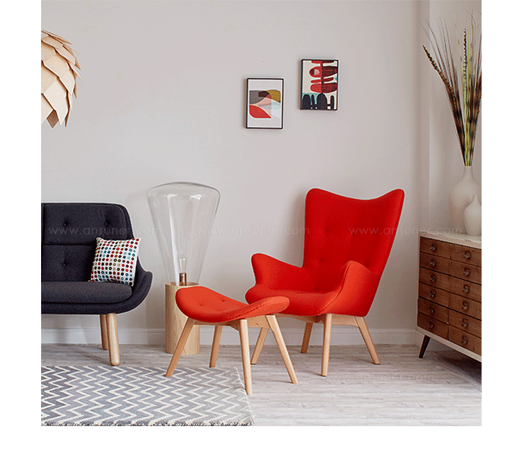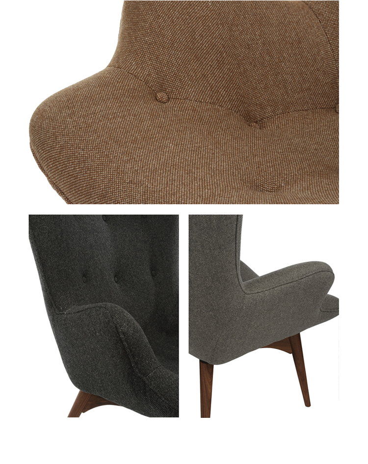Contour系列家具由著名设计师Grant Featherston设计的,包括Contour Lounge Chair(轮廓休闲椅),Contour Lounge Ottoman(轮廓休闲脚踏)及其组合Contour Lounge Chair and Ottoman(轮廓休闲椅&脚踏)。Grant Featherston是澳洲设计界的灯塔,对许多澳洲设计师及家具控来说,Grant Featherston就是他们毕生的偶像。Contour系列家具有着花朵般的轮廓,工艺精湛榫楔结构的后倾脚座,细致钉扣从背靠延伸到坐面,超级舒适的包覆乘坐感,坐在其上面,真的就像是被捧在手心般的感觉。不论是乡村风、北欧风甚至是新古典低调奢华的家居风格,其都能像个公主般,优雅的点缀出您与众不同的品味。这把椅子经常被认为是澳大利亚家具设计的图标。灵感来自艺术与手工艺运动和包豪斯设计的极简主义的体现。