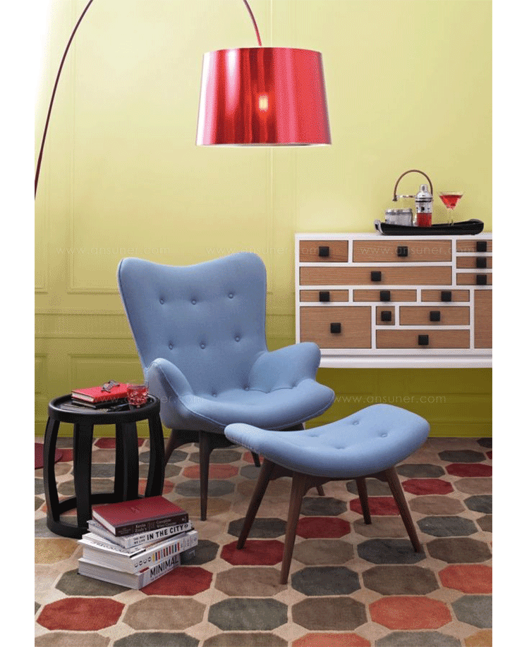 Contour系列家具由著名设计师Grant Featherston设计的,包括Contour Lounge Chair(轮廓休闲椅),Contour Lounge Ottoman(轮廓休闲脚踏)及其组合Contour Lounge Chair and Ottoman(轮廓休闲椅&脚踏)。Grant Featherston是澳洲设计界的灯塔,对许多澳洲设计师及家具控来说,Grant Featherston就是他们毕生的偶像。Contour系列家具有着花朵般的轮廓,工艺精湛榫楔结构的后倾脚座,细致钉扣从背靠延伸到坐面,超级舒适的包覆乘坐感,坐在其上面,真的就像是被捧在手心般的感觉。不论是乡村风、北欧风甚至是新古典低调奢华的家居风格,其都能像个公主般,优雅的点缀出您与众不同的品味。这把椅子经常被认为是澳大利亚家具设计的图标。灵感来自艺术与手工艺运动和包豪斯设计的极简主义的体现。