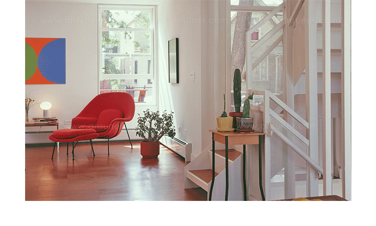 Womb Chair 的基本构造是由抛光镀铬或雾面钢管底座,以一体成型的泡棉包覆框架所组成。 Eero Saarinen 设计这张椅子挑战了一般世俗的规则,打破窠臼,树立了新的现代设计和舒适的标准,充分显示他的高超才华。