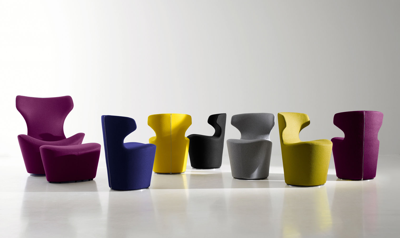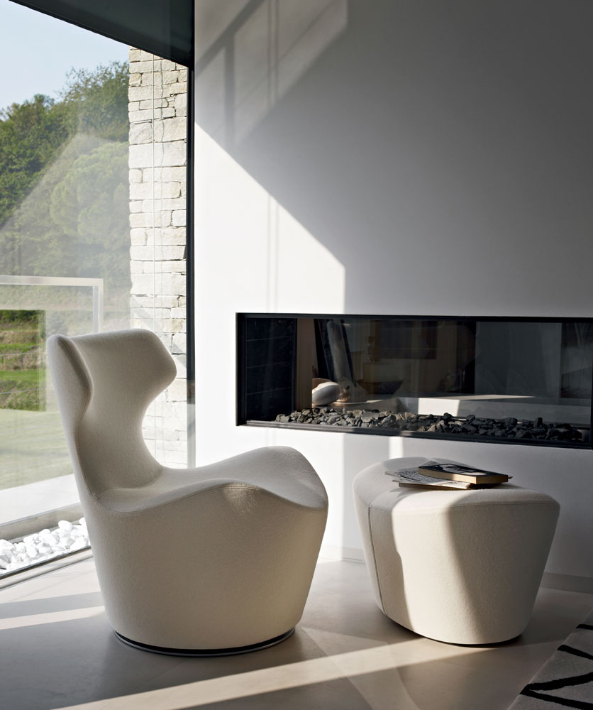 看似由單一材質一體成形的大型雕塑物件,Grande Papilio 流線形的設計從倒置的錐形體中雕塑而來。由下而上漸寬的椅背空間,提供了極致的舒適放鬆體驗。Grande Papilio 旋轉 360° 的底座系統能自由自在的環視空間中恣意流動的美好。強烈雕塑個性特質的 Papilio 系列家具也持續的擴大當中,不同大小和用途的 Papilio 家族:Papilio、Piccola Papilio、Grande Papilio、Love Papilio、Mini Papilio、Papilio Ottoman 提供了多元而完整的舒適空間。