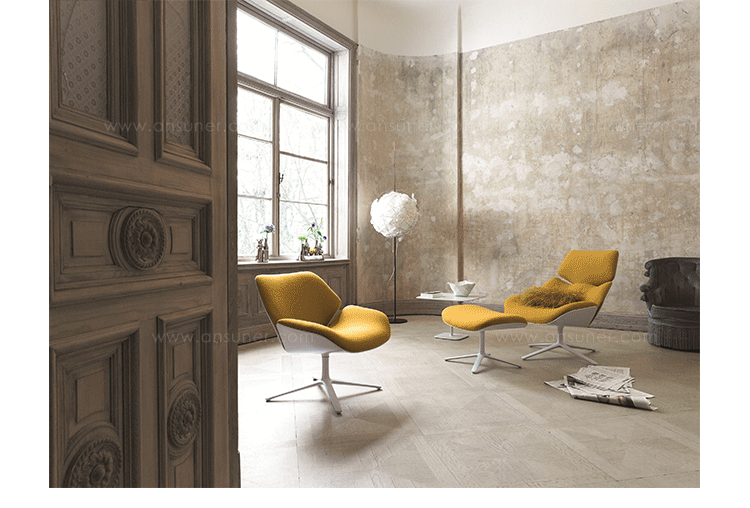 德国设计师Markus Jehs和Jurgen Laub设计的这款虾仁椅家具系列主要包括:Shrimp Chair(虾仁椅)、Shrimp Ottoman(虾仁脚踏)及其组合Shrimp Chair and Ottoman(虾仁椅&脚踏)。这款椅子的设计灵感来源于虾,优雅的轮廓平垫和弯木制的外壳具有一个特别精致的外观,让您坐下来可以体验它的感觉,并且它赋予你坚定的支持,同时给您带来安全感.