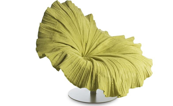 菲律宾设计师 Kenneth Cobonpue 设计了此款子名叫「开花 (Bloom) 」的椅子(Bloom Easy Armchair)。拟态一朵花盛开的模样,采用纯手工工艺将微纤维织物缝入碗状树脂椅座上,听起来就觉得很有科技感对吧,椅子下面的圆盘基座由钢铁制成,所以产品本身是十分的牢固安全的。