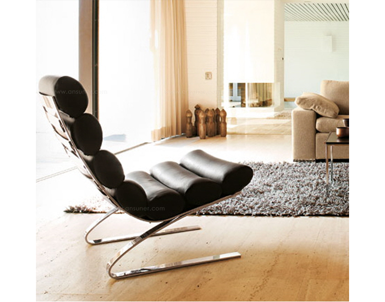 Reinhold Adolf & Hans Jurgen Schropfer为德国著名家具公司Cor设计了一款名为鼻窦系列的家具,这系列家具包括Sinus Lounge Chair(鼻窦躺椅)、Sinus Lounge Ottoman(鼻窦休闲脚踏)及其组合Sinus Lounge Chair and Ottoman(鼻窦躺椅&脚踏)。躺椅造型就像一只只圆形的鼻窦组合在一起,材质是不锈钢框架椅身、进口皮革扪面、软包内部填充进口海绵,躺着上面非常的抒情惬意。