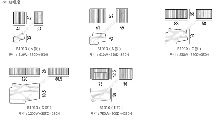 Lou 咖啡桌 系列尺寸/示意图