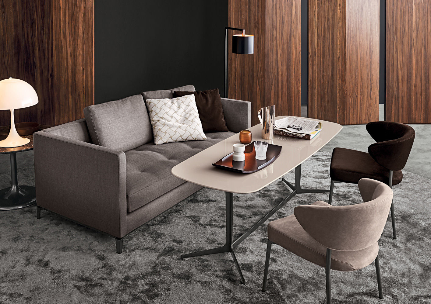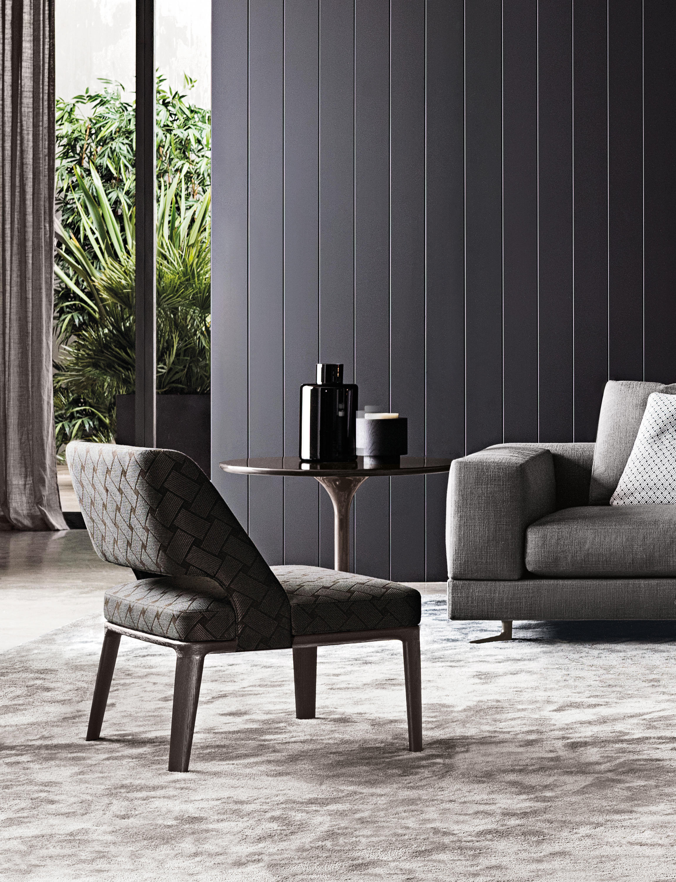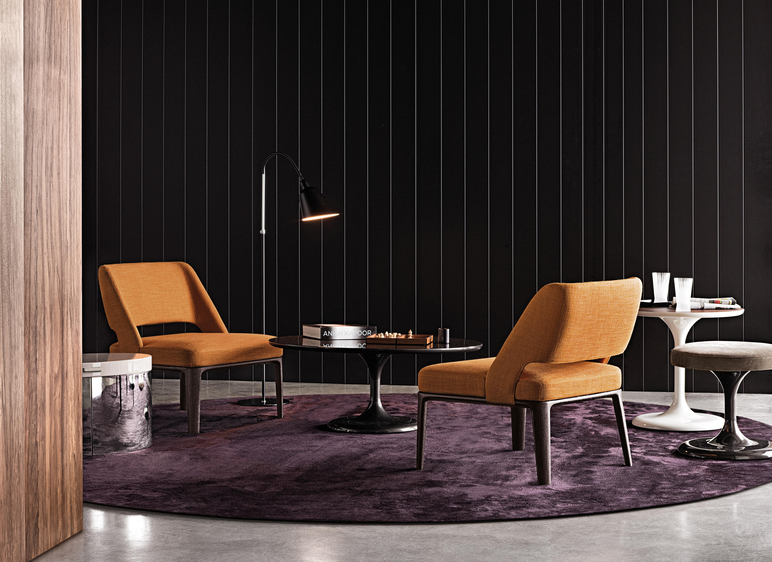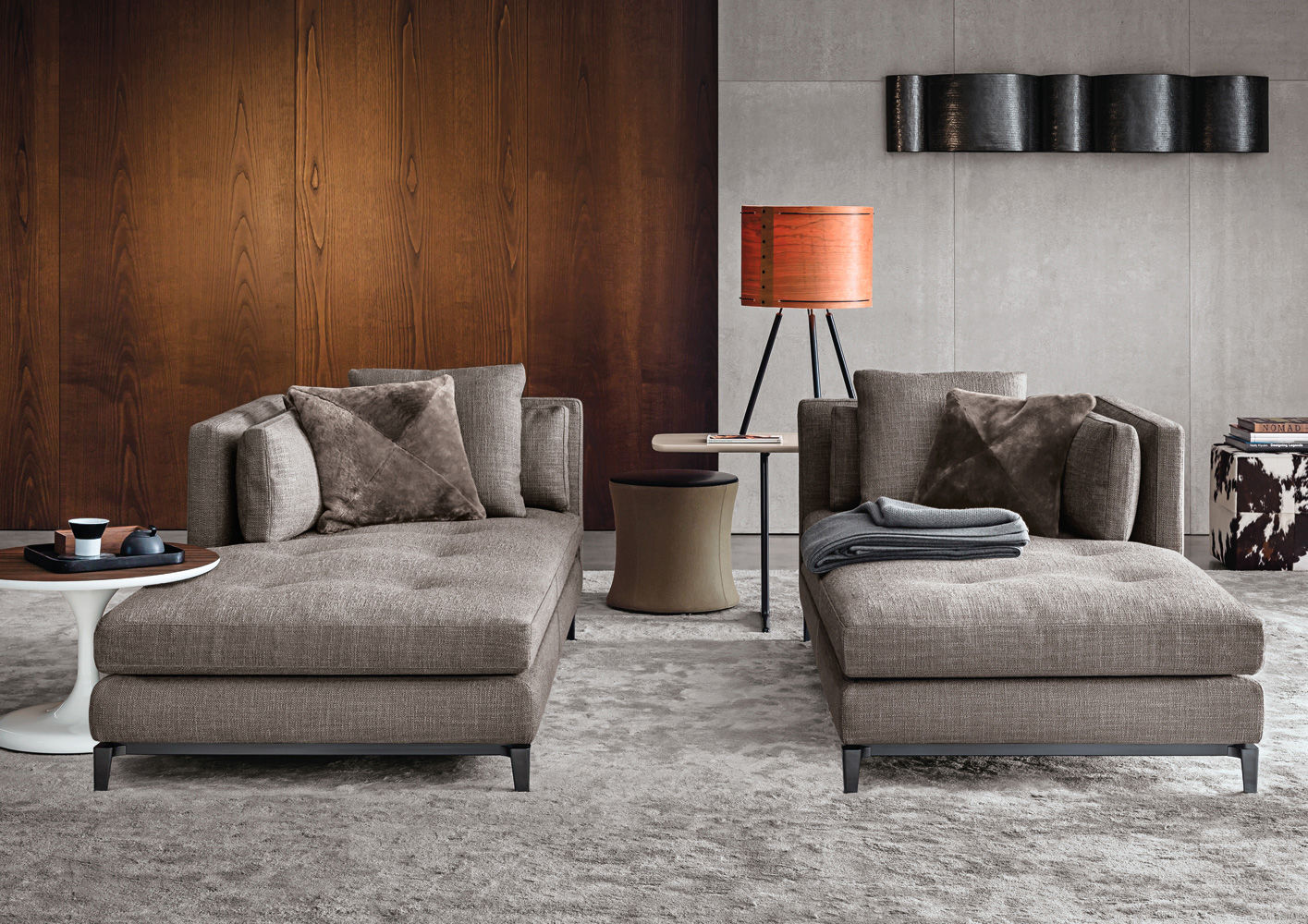 Neto是一组咖啡桌系列,有不同的高度可供选择,此外还有三种直径的台面以及三种不同的材料-颜色组合。如果基座和台面使用相同的颜色亮光漆(白色或Pewter色),以此来展现造型的纯粹感;另外,无论是基座为Pewter色,台面为Marron Damasco大理石的版本;还是基座为白色或Pewter色,台面为亚光漆面的花梨木的版本,两者都强调木材和石材这两种材质的珍贵性。“全白”版本则展现出Neto咖啡桌的可塑性。在亚光漆面的花梨木版本中,台面下方使用与聚氨酯基座相同的颜色,采用Minotti Studio的独家设计。技术与设计内涵在咖啡桌上展露无遗,体现出十足的个性,使其能够搭配系列中的任何沙发座椅。这款极具功能性的休闲凳属于Neto家族,基座材质为聚氨酯,漆面颜色为Pewter色,上方部件则添加填充物,包覆Minotti独家系列中的布料和皮革。Neto休闲凳是搭配LANE边几的理想之选,实际上,它也是一款万能单品,在任何环境中都能自如地展现魅力,与系列中的任何产品搭配都毫无违和感。