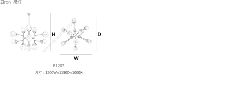 Ziron 吊灯 系列尺寸/示意图
