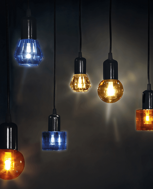一个新的灯泡概念,在水晶,技术和复杂的透明度之间的对话,经过刻面手工处理.灯泡被重新解读为闪闪发光的宝石,三款灯泡由三种不同水晶形状和三种颜色组成.