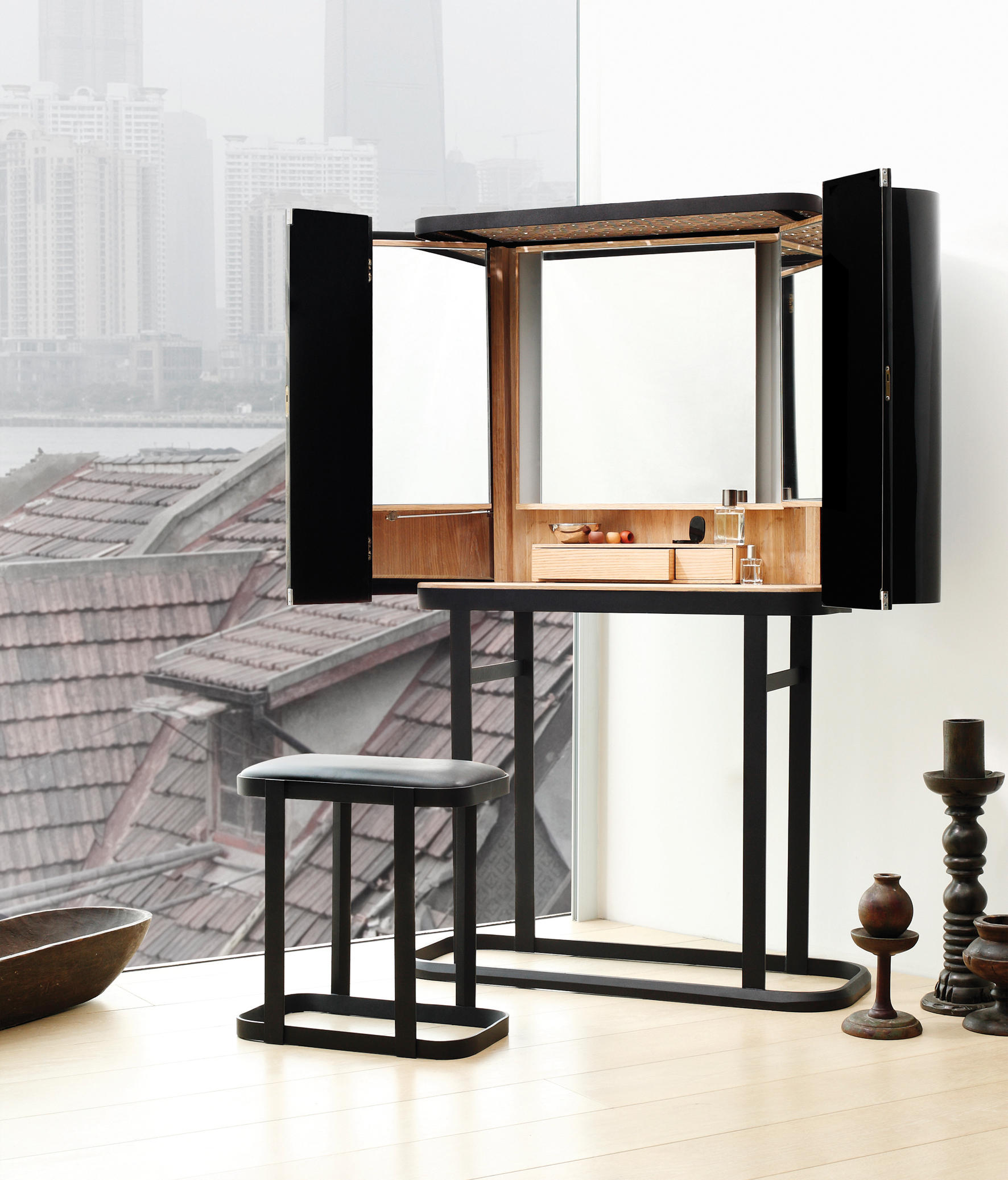Lyndon Neri和Rossana Hu是NERI&HU;他们在上海拥有自己的工作室NHDRO,代表着中国第一代具有才华和个性的建筑师和设计师。 他们很年轻,在美国接受过培训,并返回亚洲巨头,希望改变“中国制造”的含义。他们为BD设计的“自恋者”系列就是一个例子:在中国设计并在巴塞罗那制造。世界似乎相反,但这只是未来的一个例子。Lyndon和Rossana的作品体现了西方当代设计特征与传统东方根源的融合。这是梳妆台,这是一种家具,在东方文化中很常见,有灭绝的危险。