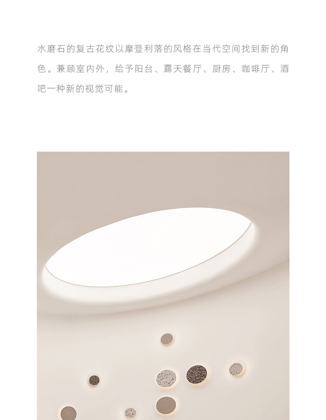 以材质再生为基本手段的水磨石系列,将陶瓷废渣再生成简洁形态的日常性家具,以衍生产业的形式回归到大众层面的使用中。 中国佛山,这片拥有全球最大最成熟的陶瓷产业链和产业集群的建筑陶瓷工厂的土地,承载着每年400万吨陶瓷废弃物带来的环境污染。 以材质再生融入日常,不仅是激发商业价值的大胆尝试,是环保理念的日常化实践,更是对自我尊严的基本坚守和追求,我们探寻陶瓷跨越地域局限的一种当代突破!