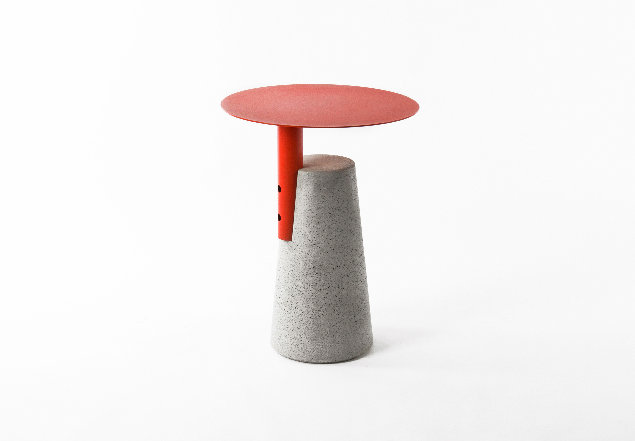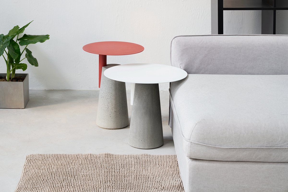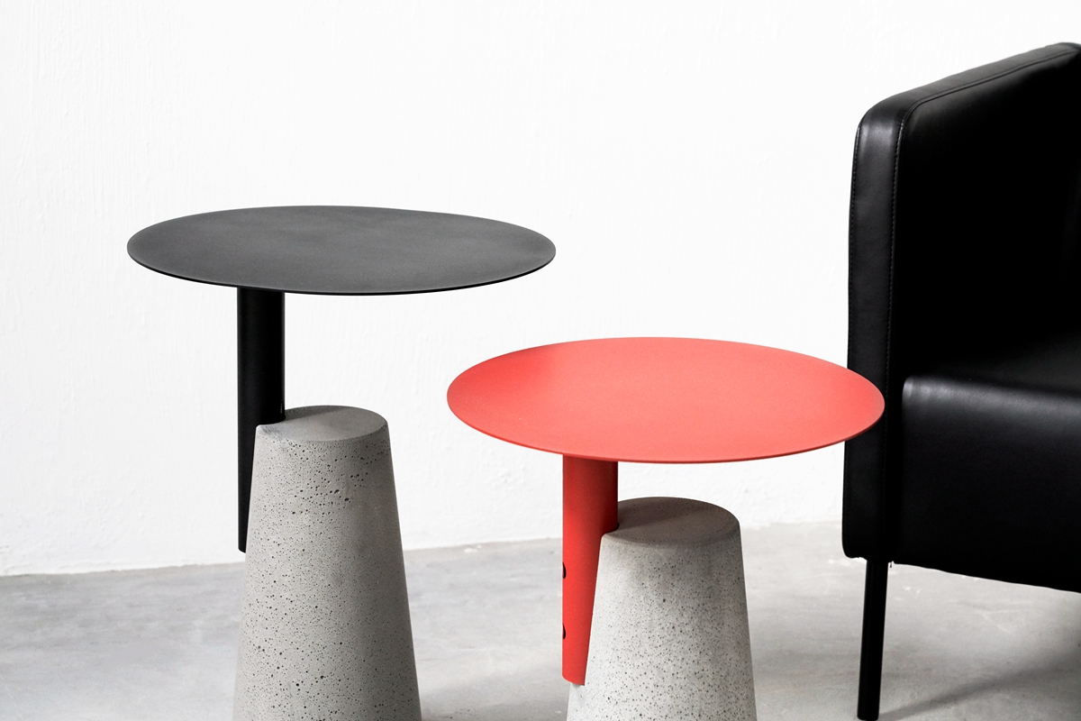 一竖加两竖,加三竖;红色搭黑色,搭白色,所见即所得,简单就是法则。用“0”形金属面板与水泥墩做一道减法,生产工序至简,功能至简,造型至简。简单才是需求,给设计做笔减法,去除复杂的修饰、多余的功能,凝炼欲望,简化造型,一切只为直白的使用与纯粹的美。在加工和组装工序上的简化,能有效节省生产成本。作为边桌,具有很强的功能性目的,贴合现代居室的简约理念,没有过多的干扰性,适用于现代家居用具的各种组合搭配。